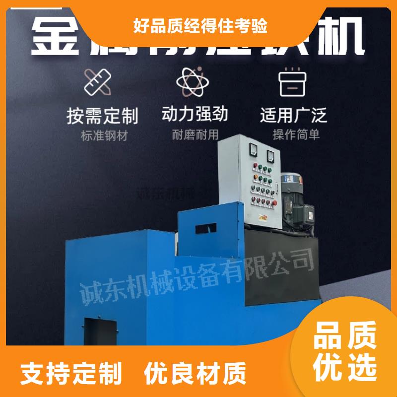 诚东自动曲靖麒麟废铁压饼机、曲靖麒麟金属铁销打包机 、曲靖麒麟铁销压饼机采用液压传动,可将废铁压成密度大于5的饼块,广泛用于压制各种金属屑(铁屑、生铁屑、铝屑、铜屑等)、易拉罐、废酒盒、铁刨花、粉状金属粉(铁粉、铝粉、铜粉等),不需要添加任何粘合剂,等金属原料通过高压直接冷压成3~10公斤的圆柱或其他形状的饼块,以便于储运及减少回收再利用过程中运输、冶炼的损耗。可根据用户要求尺寸及形状定做模具,成型后的饼块可用于铸件、炼钢等,其价格远远高于废铁价。工作原理:将松散物料加入加料缸上方的大料斗中。加料缸后腔进油,活塞杆伸出,并复位,然后子缸后腔进油,带动主缸活塞杆和冲头快速下压,当冲头进入模腔后,主缸后腔进入压力油,主缸开始攻进将物料压缩形成屑饼,并保压后,主缸微退,副缸后腔进油,活塞杆回退,带动抽块后退至饼块可出位置,主缸继续下降,将压好的饼块压出模腔后,副缸前腔进油,活塞杆伸出,带动抽块将饼块推出饼块,同时复位。后子缸前腔进油,带动主缸活塞杆和冲头上升,并复位,完成一次压饼循环过程,并进入下一次循环程序。